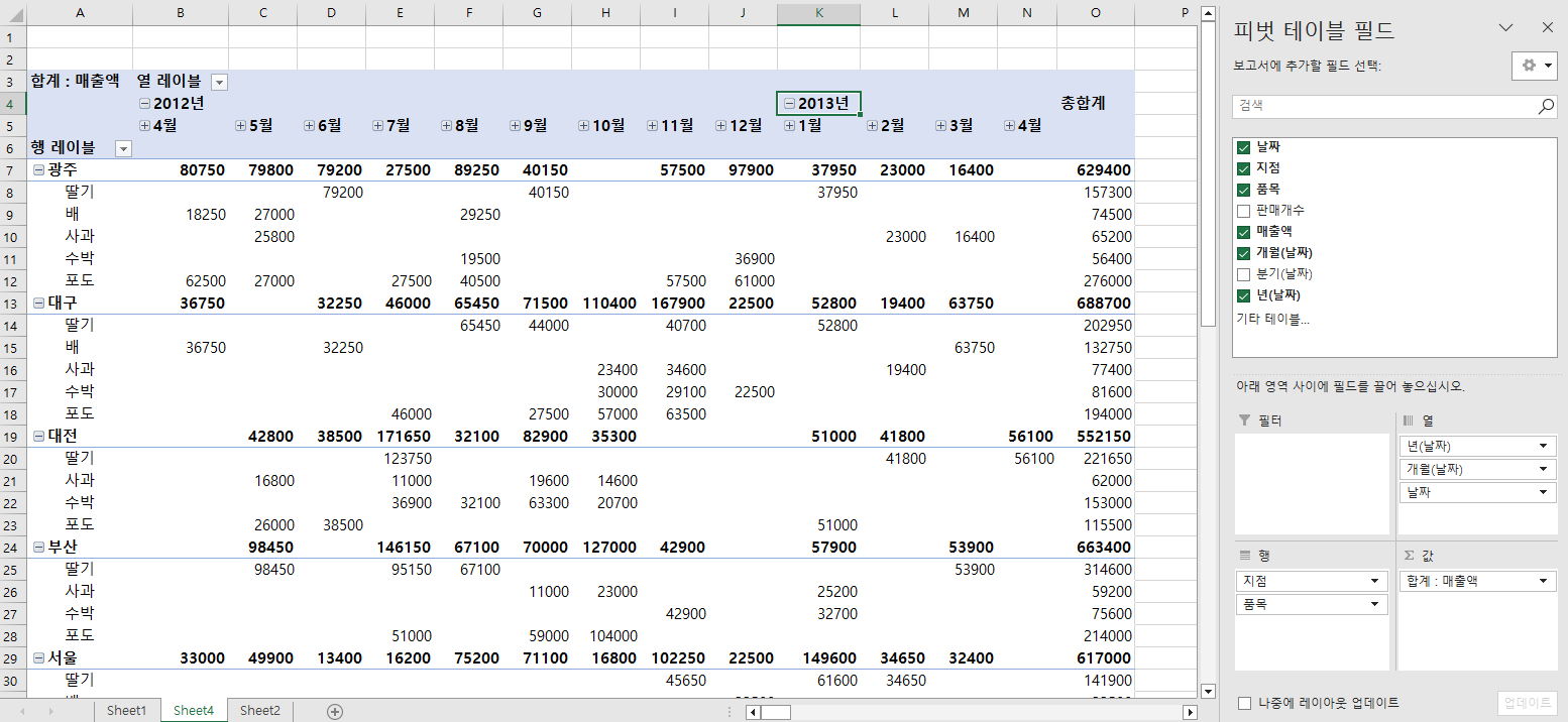 안녕하세요. 오늘은 피벗테이블에 대해서 알아보겠습니다. 많은 양의 복잡한 데이터가 주어졌을 때 항목별 개수, 합계 등의 수식을 계산함에 있어 필수인 기능입니다. 직접 함수를 입력할 필요 없이 마우스 클릭만으로 엑셀이 척척 알아서 계산해 주거든요! 피벗테이블이란? pivot의 뜻을 먼저 살펴보겠습니다. 이 뜻을 알면 피벗테이블이 무엇인지, 어떻게 사용하는 것인지 바로 이해할 수 있습니다. pivot 동사) 회전하다, 회전시키다 -출처 : 네이버 영어사전 pivot 이란 '회전하다'라는 의미입니다. 그렇다면 피벗테이블이란 '회전하는 표'로 해석할 수 있겠죠. '회전하는 표'가 무슨 말인지 아직 이해가 되지 않으실 텐데요. 표가 회전하는 것이 아니라, 표의 행과 열을 자유롭게 바꿀 수 있다는 것으로 이해해 주..
